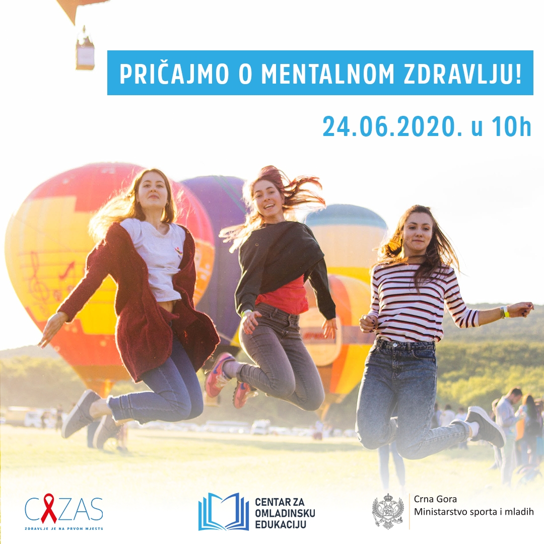 NVO CAZAS u partnerstvu sa Centrom za omladinsku edukaciju sprovodi radionicu o mentalnom zdravlju, koja će se održati 24.06. u NEST-u (Cetinjski put- zgrada Dallas) sa početkom u 10h. Aktivnost je dio projekta “Aktivni mladi za unaprjeđenje mentalnoga zdravlja” koji je podržan od strane Ministarstva sporta i mladih.